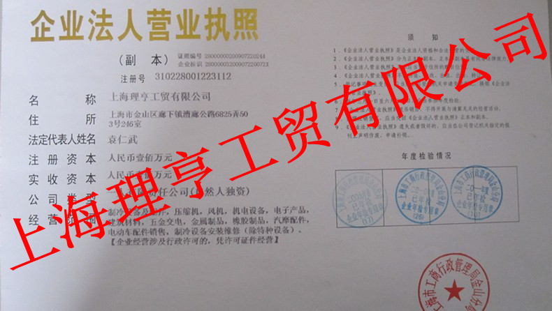 上海理亨營業(yè)執(zhí)照副照