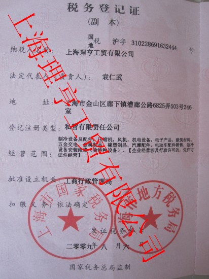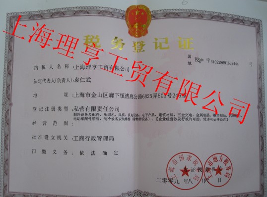 上海理亨稅務(wù)登記證
